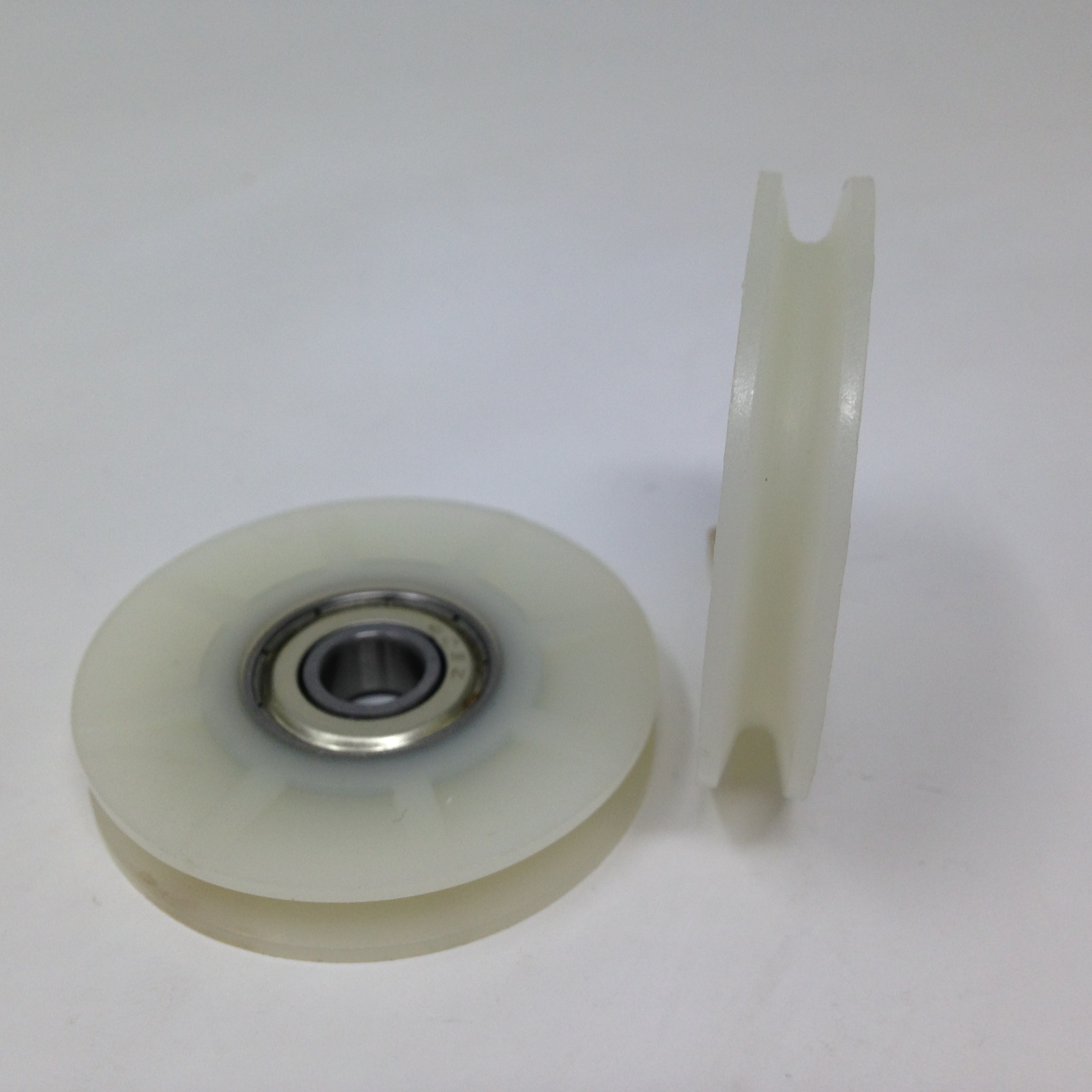 Roulette simple droite à gorge en U pour porte coulissante de cabine de douche. Vendues par lot de 4, ces roulettes se composent d’un corps en acier inoxydable. Le bandage de la roulette est en téflon, recouvrant un roulement à billes étanche en acier. Le choix et la qualité des matériaux employés offrent une utilisation optimale de confort, limitant ainsi le frottement et le bruit lors de la manipulation de la porte.