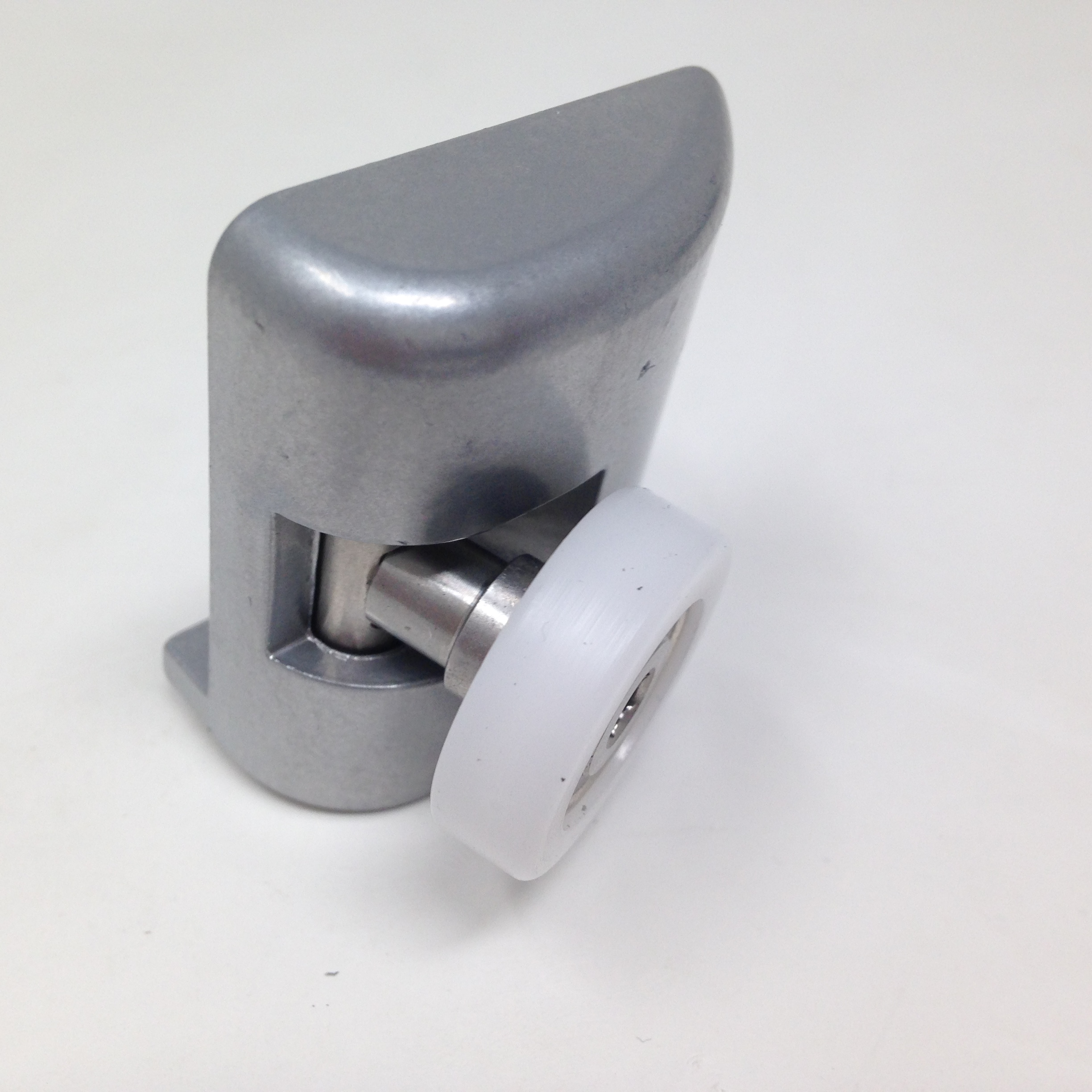 Roulette simple articulée haute et basse pour porte coulissante de cabine de douche. Vendues par lot de 4, ces roulettes se composent d’un corps en laiton ou en alliage de zinc et d’éléments de soutien en plastique type ABS. Le bandage de la roulette est en téflon, recouvrant un roulement à billes étanche en acier inoxydable. Le choix et la qualité des matériaux employés offrent une utilisation optimale de confort, limitant ainsi le frottement et le bruit lors de la manipulation de la porte.